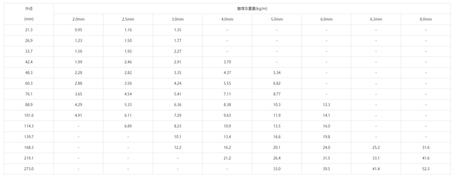 外径 (mm) | 壁厚及重量(kg/m) | |||||||