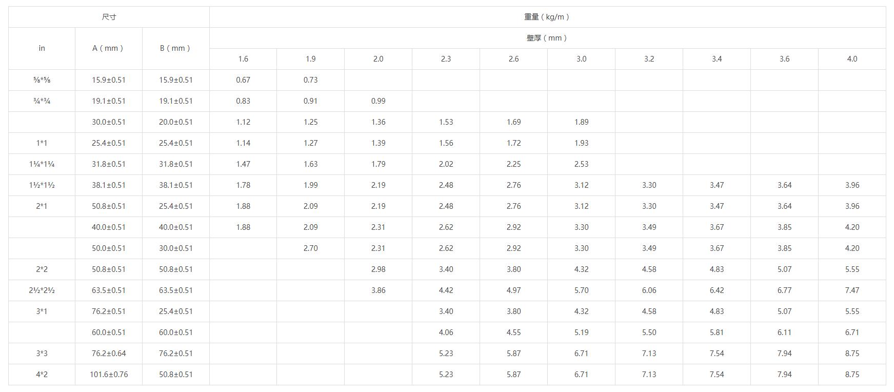 | 尺寸 | 重量(kg/m) | |||||||||||