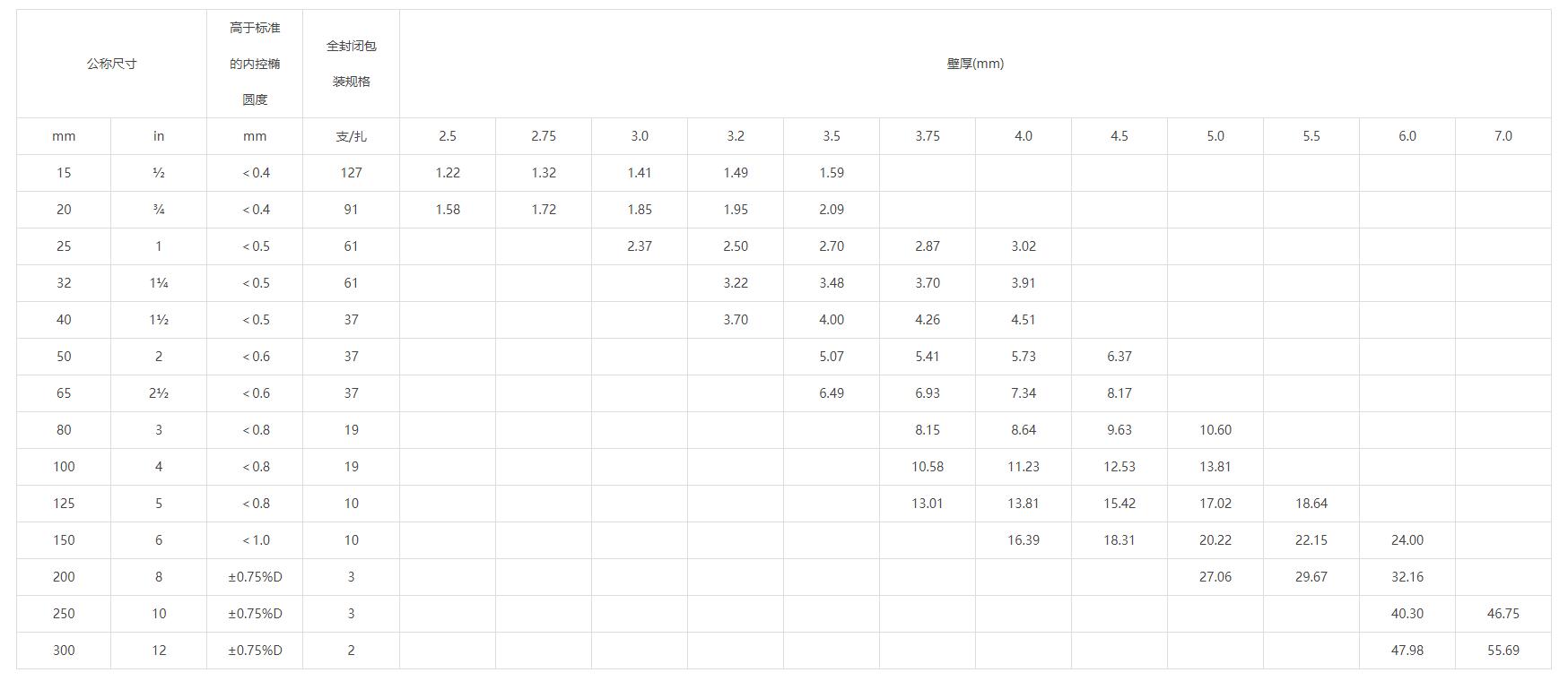 公称尺寸高于标准的内控椭圆度全封闭包装规格壁厚(mm)