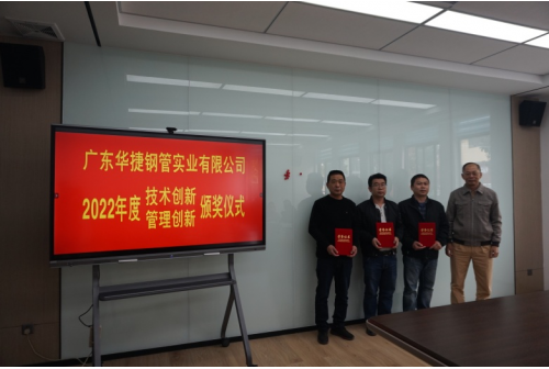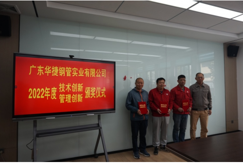 创新是引领发展的动力。2022年度,华捷钢管公司全体干部员工围绕公司中心工作,积极探索,勇于突破,特别是在公司搬迁和完善新厂区运营条件、新设备投入运行、旧设备升级改造等过程中,涌现出一批措施有力、成效显著的创新成果,有力地保障了公司能无缝地持续正常运营和推动了公司各方面工作向前发展。为表彰先进,鼓舞士气,调动员工开拓创新的积极性,公司对2022年度在技术创新、管理创新工作中成绩突出、具有示范带动作用的项目进行表彰奖励。